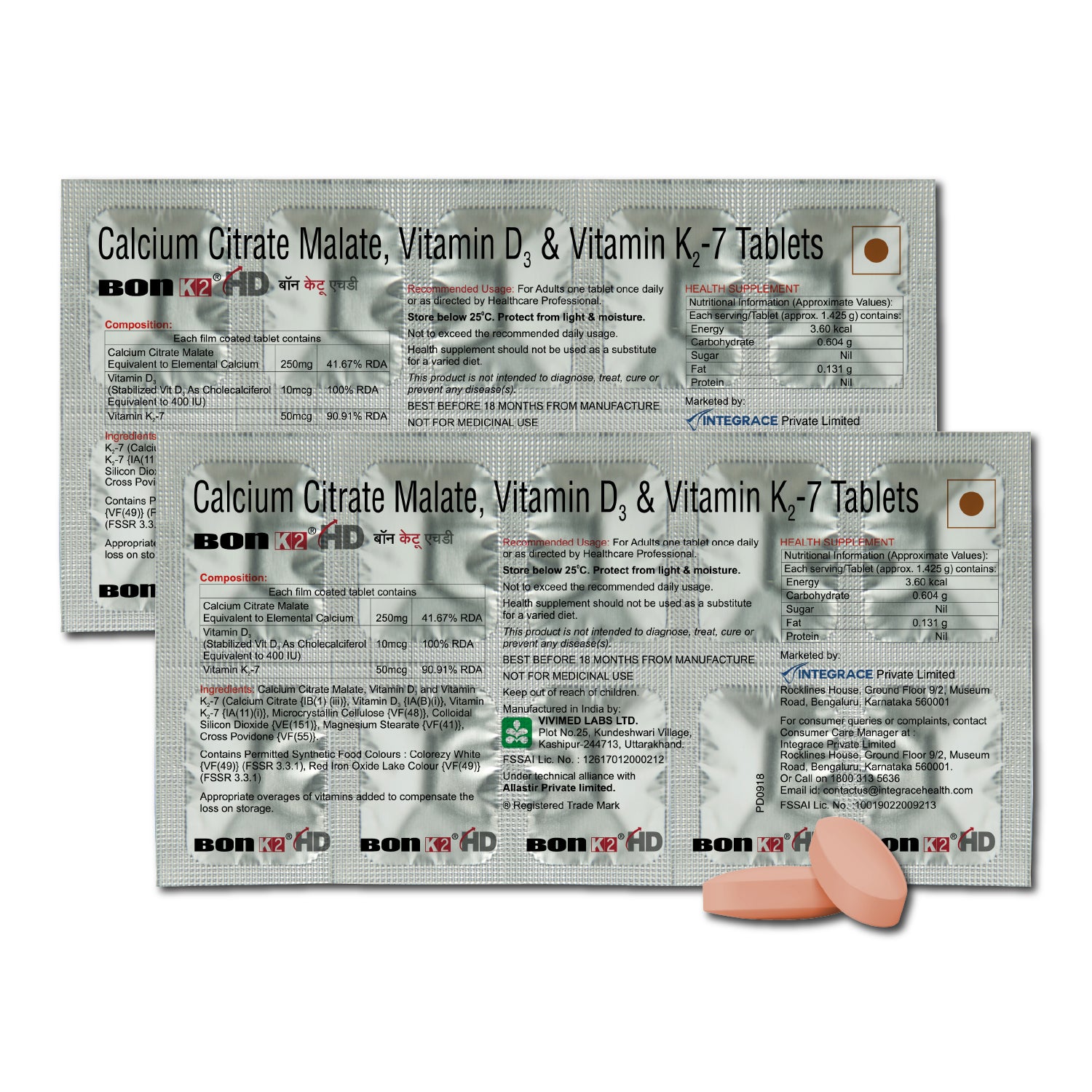 - Bon K2 HD is a perfect source for Calcium Citrate Malate, Vitamin D3, and Vitamin K2-7 for Men & Women.