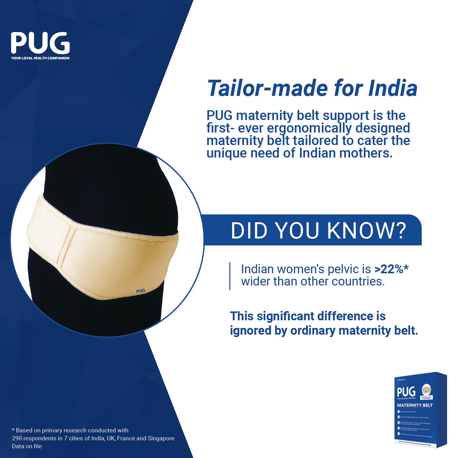 Pug Maternity Support Belt is thoughtfully designed for Indian women with wider waist and pelvic sizes, providing specialized pelvic support and care. Its ergonomic design ensures extra comfort and stability throughout pregnancy, offering relief from strain and promoting better posture. The belt's gentle compression supports the lower abdomen, minimizing discomfort and enhancing musculoskeletal health during pregnancy. With enhanced pelvic stability and ligament support, it reduces excessive movement, offering superior care and confidence on the journey to motherhood. The PUG Maternity Belt addresses unique requirements, catering to expectant Indian mothers' needs, and surpassing strict quality standards. Embrace the nurturing care it provides, recommended by thousands of doctors, ensuring a comfortable and supported pregnancy.