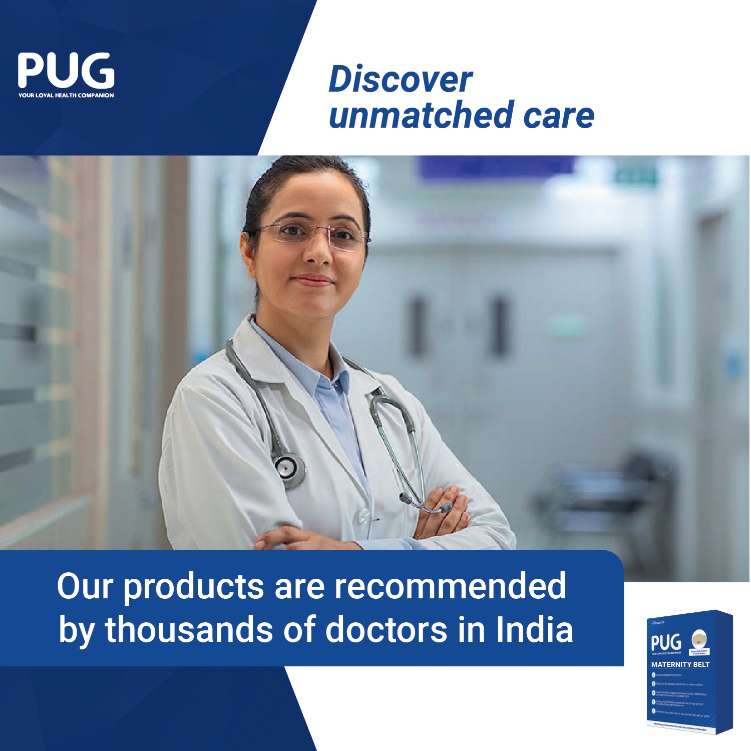 - ✔ Discover Unmatched Care: The Pug Maternity Belt, created by Integrace Health, a company whose products are recommended by thousands of doctors in India. It surpasses strict quality standards, ensuring the right product for your needs. Experience the comfort and support you deserve throughout your pregnancy with the trusted Pug Maternity Belt.